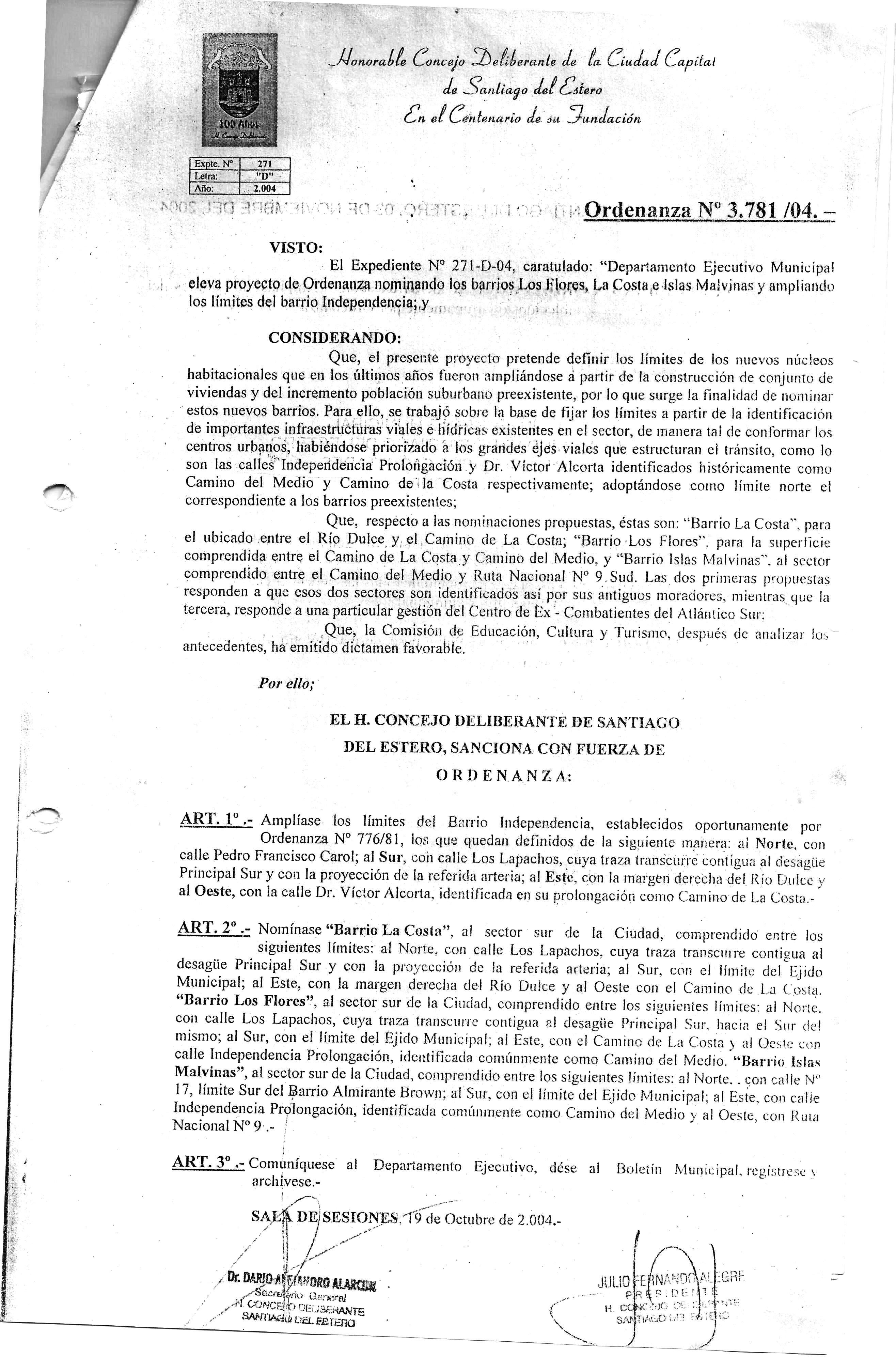 El 22 de Octubre de 1970 por Ordenanza Nº 330, la Municipalidad de la Capital se