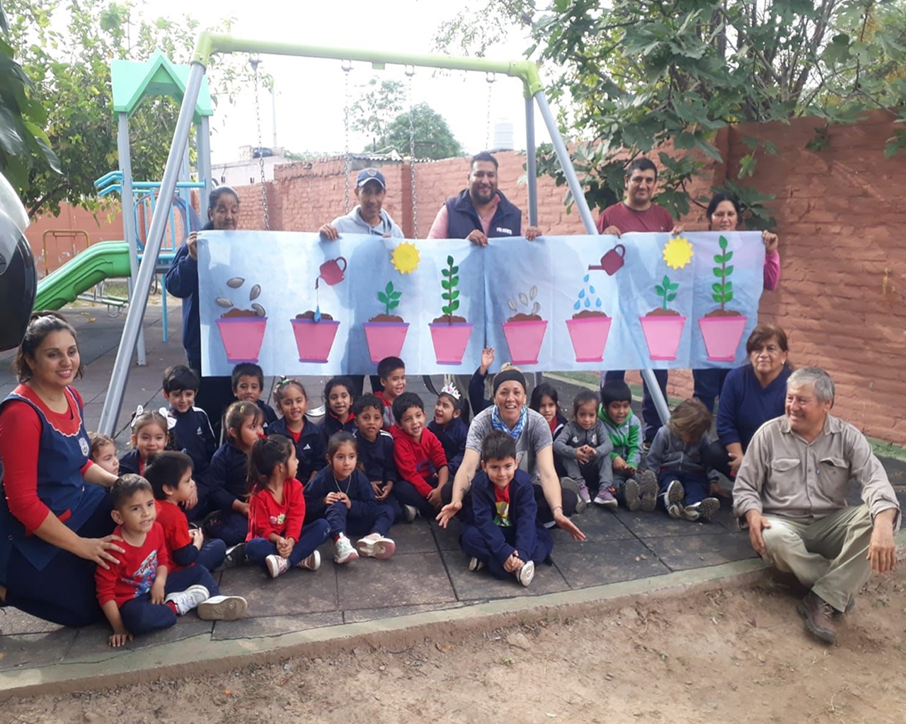 Alumnos de la Escuela Técnica Nº1 asistieron al Centro de Jubilados del barrio Jorge Newbery y participaron de talleres de educación ambiental, arte mural, música en vivo, plantación de árboles y ecocanjes de botellas de plástico a cambio de plantines.